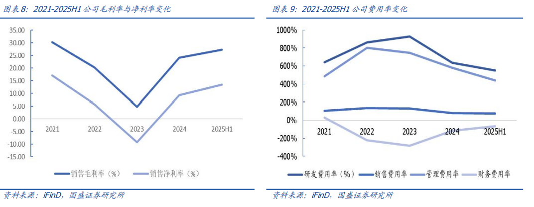 费控能力提升,持续提高研发投入。公司2025年H1销售费用率0.7%,同比下降0.1pct;管理费用率4.4%,同比下降0.2pct;研发费用率5.5%,同比下降0.1pct,销售费用率、管理费用率较往年均有所下降,主要得益于公司的费控能力提升。同时,公司于25年继续加大研发投入,2025年Q2研发投入为1215.3万元,同比增长62.4%,环比增长41.5%。