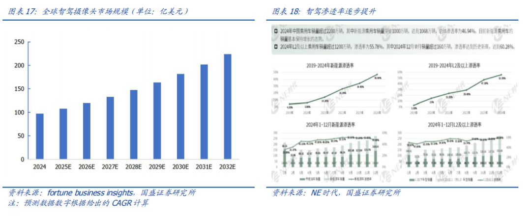 2.2.2 汽车电子行业:智驾渗透加速,车载摄像头需求量大幅提升