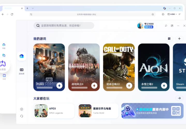 很多人会想到用加速器,但市面上不少工具要么月费高,要么要装独立客户端,还可能后台常驻吃资源、弹广告,甚至和Warden反作弊冲突。今天我想分享一个最近实测表现非常清爽的轻方案:夸克PC端内置的游戏加速器。它已专门适配魔兽世界各版本(包括正式服与怀旧服),能智能优化从登录、区域加载到副本同步的全链路网络,关键是——完全免费、无需额外安装软件,用起来毫无负担。